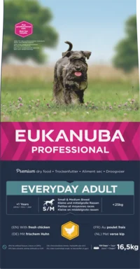 EUKANUBA dry dog food (kibble) for adult small and medium breed dogs with fresh chicken - everyday breeder bag