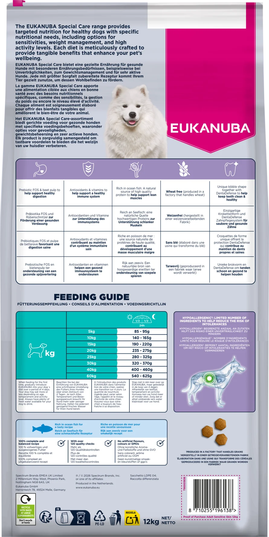 EUKANUBA Special Care provides 100% complete and balanced nutrition, making it a trusted choice for pet owners looking for a high-quality food for adult dogs with sensitive skin. Whether your dog is large or small, this formula delivers the right nutrition to support a healthy life.